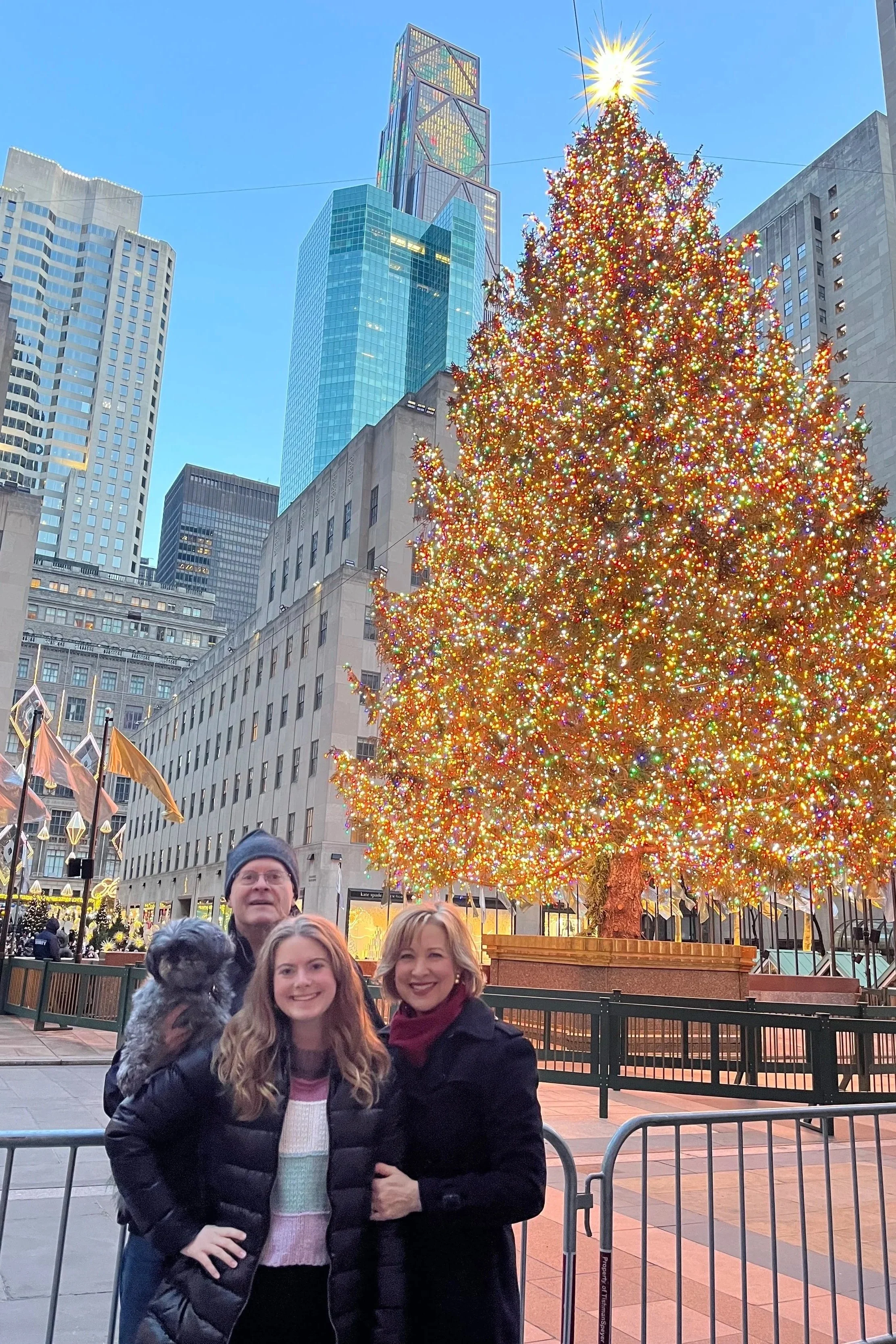 Joanne with her family. Lee works at 30 Rock, so his employee badge allowed close up access to the tree! But don’t be fooled, there are still thousands of people jam-packed together along the sides!!!